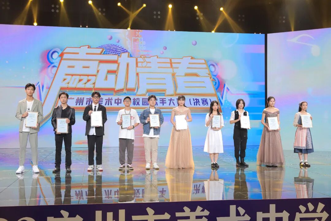 5月28日晚,声动青春——2022年广州市美术中学校园歌手大赛决赛在广州广播电视台演播厅举行。本次比赛旨在丰富学生的课余生活,活跃校园文化气息,为学生提供一个展示风采与个性的舞台,培养德智体美劳全面发展的艺术人才。10位校园歌手从3月的海选经历了激烈的角逐走上决赛舞台,他们披荆斩棘,乘风破浪,在舞台上完成华丽的蜕变绽放。大赛现场,十强选手和嘉宾共同演唱校歌《与美同行》,一起怀揣着“热爱与梦想”在梦中校园、艺术殿堂追求美、歌颂美、创造美。经过激烈角逐以及评委老师精彩点评,本届歌手大赛冠亚季军终于“出炉”。杨子欣、黄泓泰、包竣尹分获冠亚季军。网络最佳人气奖由陈柏旭、黄研、黎楚源摘得。