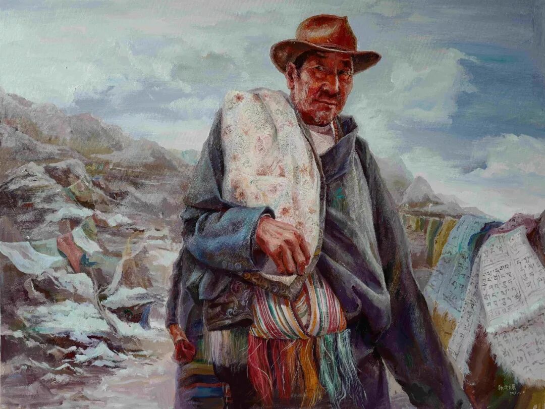 看待作品的社会性,扑面而来的高原写真,虔诚、执着、朴实、神秘,好像凝结于山峰的冰雪,无垠雪白纯净,令人神往;而特定的时空隧道,可以看到追寻人物灵魂的洗礼,随意、安定、不争、祈福,往往让观众产生了视觉忐忑和心灵震撼,引发内心的自省;或许,作品某种不寻常欣赏视角,可以穿透观者的灵魂,令人驻足,从而读懂作品所包含的物象痕迹,社会本源,理解作品的审美意味和作者的内心解读……